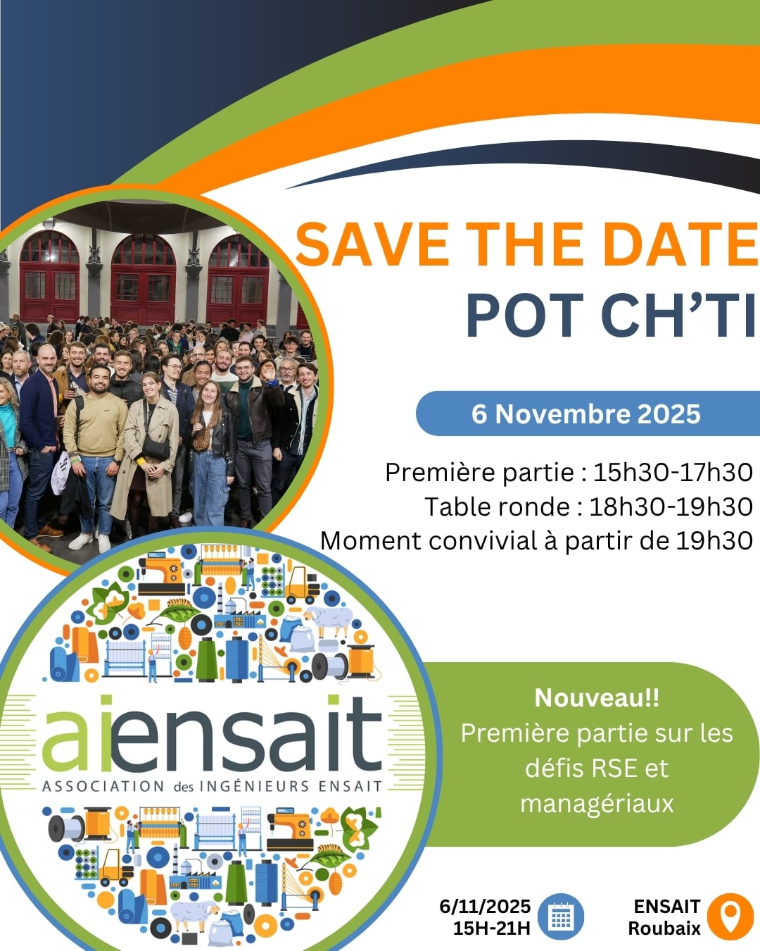On se retrouve le jeudi 6 novembre pour notre traditionnel rdv du Pot Ch’ti à l’ENSAIT – Ecole Nationale Supérieure des Arts et Industries Textiles.